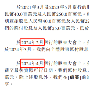 另外值得关注的是,同是在主动撤回A股IPO至向港交所递表这段时间,毛戈平公司两度大手笔分红。2024年2月,毛给平向全部股东宣派股息5亿元,并于2024年3月完成派付款。没过多久,在2024年4月的股东大会上,毛戈平再次大手笔宣派股息5亿元,于最后实际可行日期已派付3.81亿元,应付股息1.19亿元。三个月时间内,两次宣派股息合计10亿元,超出2023全年归母净利润规模。