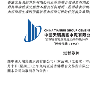 4月10日早间,中国天瑞水泥在港交所紧急公告,将于当天上午九时正起短暂停止买卖,以待发出有关公司内幕消息的公告。