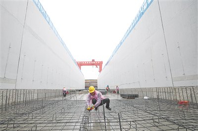 4月10日,京唐城际铁路运潮减河隧道施工段,工人正在预制装配路基U型槽施工。新京报记者 陶冉 摄