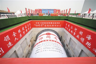 4月10日,京滨城际铁路超大直径盾构机“京滨协同号”在天津顺利始发。新京报记者 王贵彬 摄