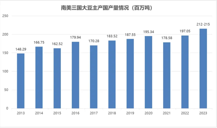 2023/2024年度巴西大豆产量是有分歧的,但南美大豆产量依旧是创纪录的。2024年1月至3月USDA供需报告将巴西大豆产量从2023年12月的1.61亿吨逐步下调至2024年3月的1.55亿吨,同比调减4.32%。2024年3月美国农业部参赞报告显示,2023/2024年度巴西大豆产量下调至1.526亿吨,较2023年12月份预测的1.585亿吨下调了590万吨,产量预估下调主要是基于巴西中西部产区天气不佳的影响。