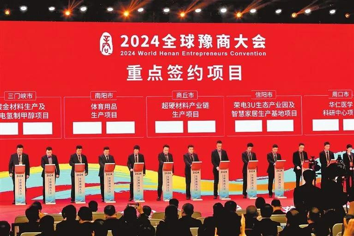 会上,郑州市中源裕泽生物研究院项目、平顶山市年产1000套智能输配电设备项目、新乡市年产50万套航空航天舰船高速网络传输连接器项目、商丘市超硬材料产业链生产项目、焦作市锂清新能源电池材料生产项目、濮阳市石脑油芳构化及MTBE生产项目等一批重点项目现场签约。