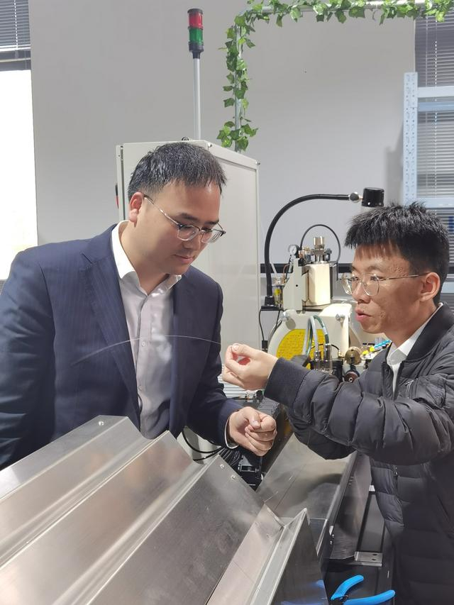 昊丰医疗技术人员向建行员工展示生产成果。