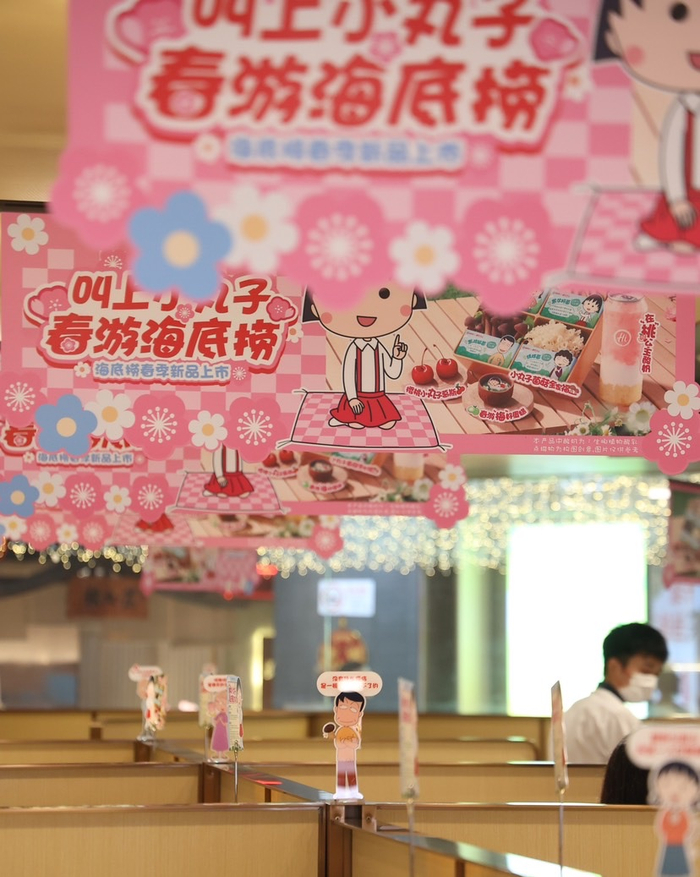 此外,在这个春天,海底捞还携手樱桃小丸子,陪伴顾客一起浪漫出游。海底捞一方面推出樱桃小丸子多款联名春游周边,方便春游党。同时,樱桃小丸子所代表的春日氛围入驻海底捞门店,将门店打造成春日打卡好去处。4月初,海底捞门店春日焕新,在新品设计上和门店装饰上,都巧妙融入樱桃小丸子元素。另外,海底捞上海设置樱桃小丸子主题快闪店,搭建樱桃小丸子打卡区、游戏互动区、周边产品区等区域,让春日就餐更有趣。