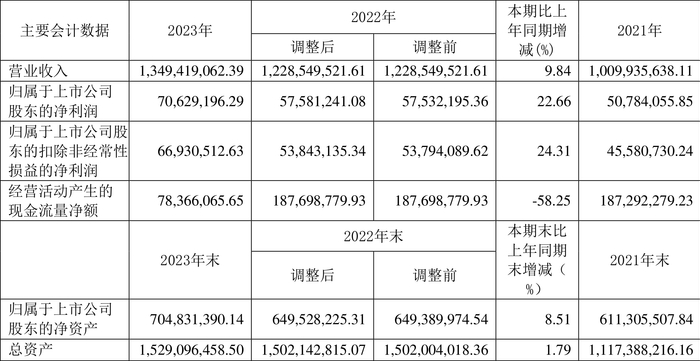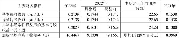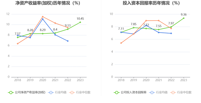 数据显示,2023年公司加权平均净资产收益率为10.45%,较上年同期增长1.32个百分点;公司2023年投入资本回报率为9.36%,较上年同期增长1.39个百分点。