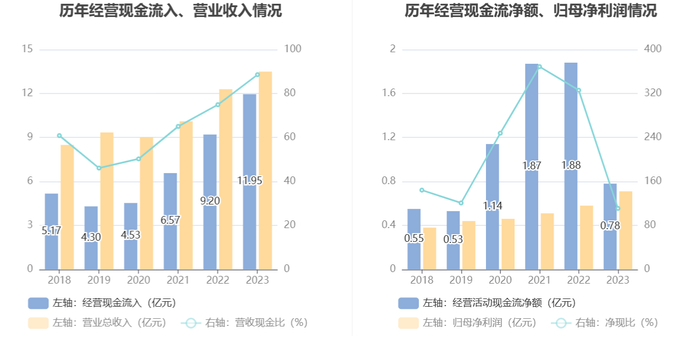 2023年,公司营业收入现金比为88.55%,净现比为110.95%。