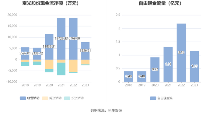 进一步统计发现,2023年公司自由现金流为1.16亿元,相比上年同期下降46.65%。