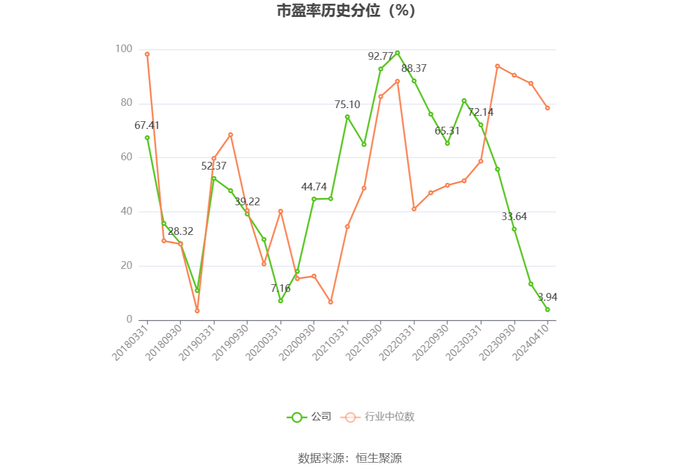 市盈率为负时,不显示当期分位数,会导致折线图中断。