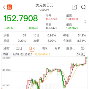 他还表示,将与七国集团(G7)合作应对汇率问题,并指出G7曾表示日元汇率的无序波动可能会对全球经济产生负面影响。此前,日本财务大臣铃木俊一也公开警告将采取“坚决行动”干预汇市。