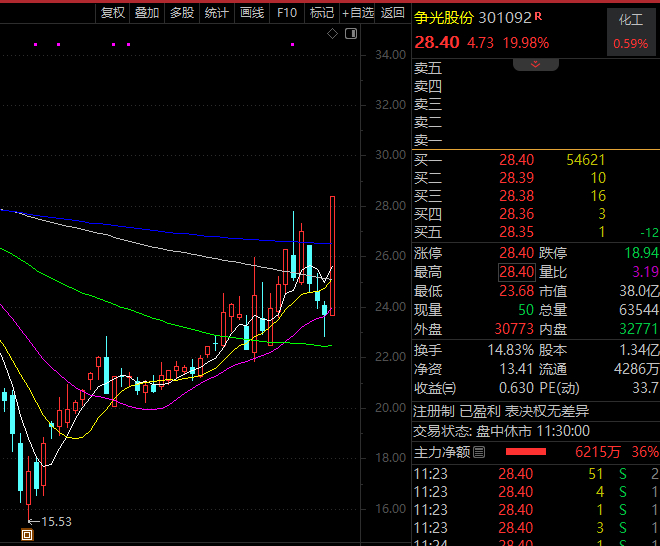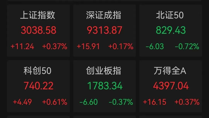 A股韧性再现,早盘上证指数上涨0.37%,煤炭、传媒、环保、钢铁、有色等板块均大涨超1%。概念方面,AI方向集体反弹,Kimi和短剧游戏等概念均大涨超2%。概念股方面,固态电池概念股飙升,争光股份、正丹股份等个股20cm涨停,道氏技术盘中20cm涨停。