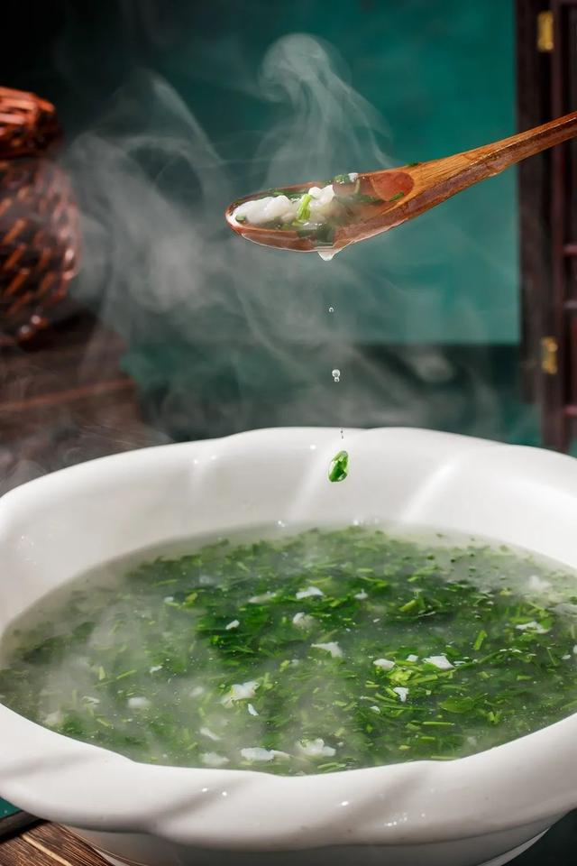 荠菜粥,民谚曰:“三月三,荠菜当灵丹。”阳春三月,正是采食荠菜的季节,荠菜的谐音是“聚财”,故此,人们又根据民间传说,于三月初三这一天,在祭祖的时候,借助祖先的神灵和财气,人们会将新鲜荠菜洗净后,然后把它和大米粥搭配在一起。
