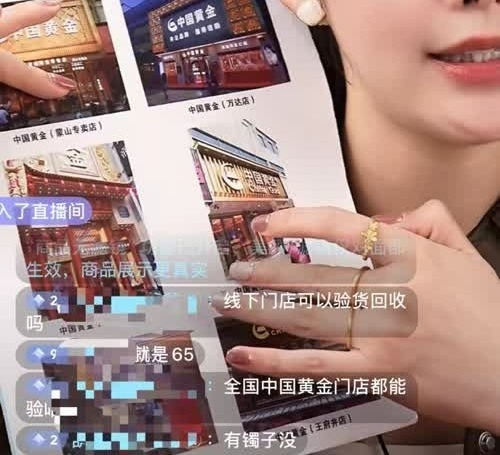 金饰价格都突破每克700元了,两三百元的“捡漏”价靠谱吗?记者看到,直播中,面对观众的疑虑,主播们纷纷搬出了线下门店服务。“全国3600多家门店,不管说加盟店还是直营店,都可以验货!”每介绍完一件金饰,中国黄金宝瑞雅专卖店的主播都会举起一块印有多家线下门店照片的宣传牌承诺。
