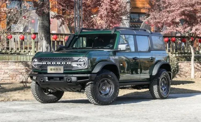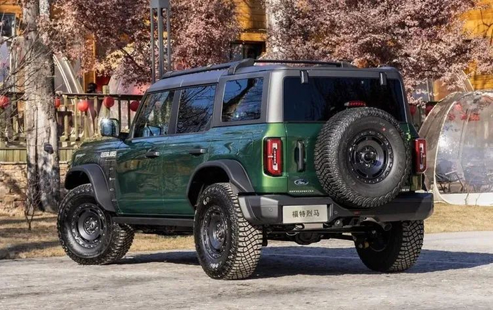 烈马采用了这个级别常见的“盒子”造型,前脸样式比较复古,细节上采用圆形头灯+方形中网的一体式设计,下包围保留了BRONCO徽标,车尾是硬派SUV常见的设计,外挂式备胎、竖形尾灯以及侧开的尾门开启方式。