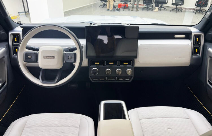内饰部分,这台iCAR V23延续当下流行的智能座舱设计,包括三幅式方向盘、空调出风口、物理按键等功能模块在内,都大量采用圆矩形的线条,配色以米白和黑色为主,细节加入黄色线条点缀,更显年轻化。