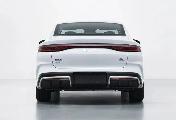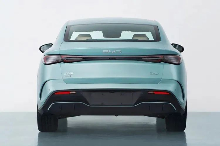 车身侧面采用了双腰线设计,整体观感较为中规中矩,门把手依旧是传统风格,下方的多幅式轮毂则比较吸睛。车身尺寸,秦L长宽高分别为4830/1900/1495mm,轴距为2790mm,除了高度与秦PLUS一致外,长、宽、轴距均超出秦PLUS不少。