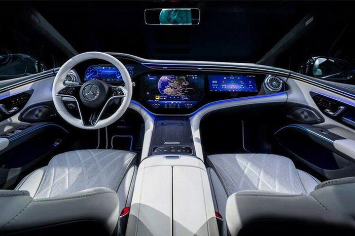 内饰,新款EQS轿车搭载液晶仪表+液晶中控+液晶副驾驶显示器三块大屏,并提供额外的镀铬装饰以及带有0.2英寸(5 毫米)泡沫的增强型后排座椅。除了衬垫外,后排座椅还配备了电动靠背功能,只需按一下按钮即可在27度-36度之间进行调整。