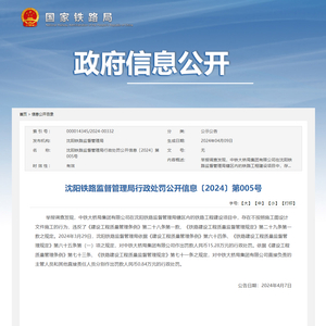 2024年3月29日,沈阳铁路监督管理局依据《建设工程质量管理条例》第六十四条、《铁路建设工程质量监督管理规定》第六十五条第(一)项之规定,分别对上述两家企业给予以下处罚:对中铁大桥局集团有限公司作出罚款人民币15.28万元的行政处罚;对中铁二十四局集团有限公司作出罚款人民币29.5545万元的行政处罚。