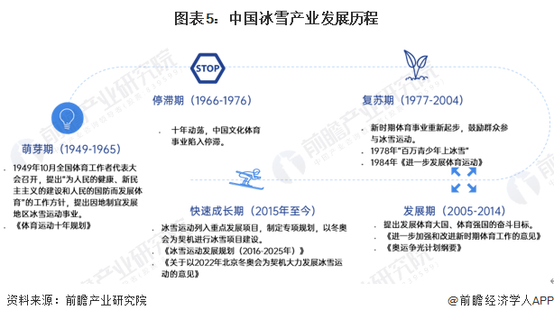 1949年《体育运动十年规划》中提出“因地制宜发展冰雪产业”,标志着冰雪产业的萌芽,随后经历了停滞、复苏、与发展阶段,2015年,北京、张家口获得2022年第24届冬奥会主办资格。随后,国家先后发布《中国冰雪运动发展规划(2016-2025年)》、《关于以2022年北京冬奥会为契机大力发展冰雪运动的意见》等政策,中国冰雪运动产业迎来重大的发展机遇,现已成为全球最大的滑雪初级市场,而冰雪运动的普及同样推动着冰雪产业快速发展。
