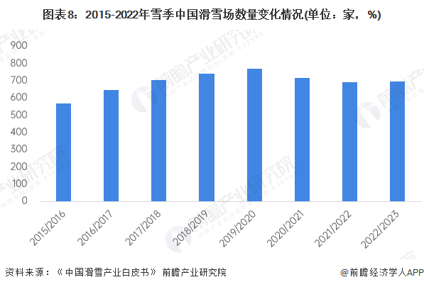 注:1)“滑雪场数量”包括户外滑雪场及室内雪场,不含旱雪、模拟滑雪器等。2)2022/2023雪季财年是指2022-2023年的冬季时间。