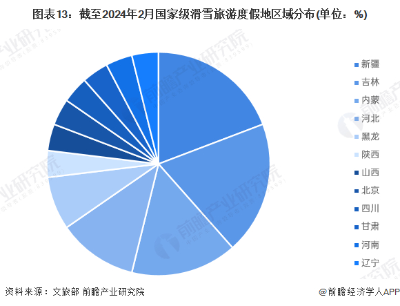 2、国家级滑雪旅游度假地:新疆、吉林相对较多
