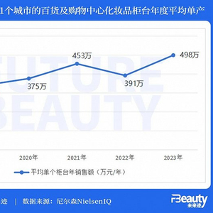 但在如此巨大的数量落差下,去年全国51个城市百货购物中心的化妆品销售额同比2022年仍回暖6%至473亿元,且单个柜台年度产出(销售额)从2019年的近336万,增长至2023年的接近500万元。