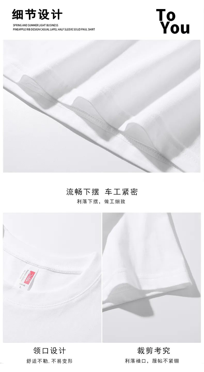 不易变形的螺纹织法,相比包领工艺更具弹力,更为耐洗耐穿,拉扯领口,也能迅速恢复原样。