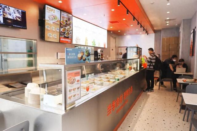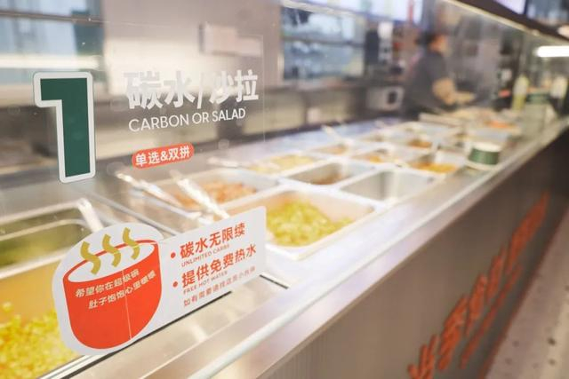 “宁宁”由此前去探访——只见小店面积不大,大致相当于一家便利店。大部分区域被用于“打饭窗口”,顾客从进门到结账,一路行经主食、蛋白质、植物纤维、配料四种食物,全部选好便能立即取餐。