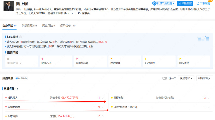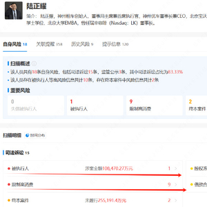 在库迪咖啡疯狂扩张的背后,陆正耀却再次陷入“窘境”。未来网记者通过企查查查询到,当前陆正耀存在1条被执行人信息、5条历史被执行人信息,9条限制高消费令,涉案总金额超过30亿,另外还有神州优车的36000万股权数额被冻结。