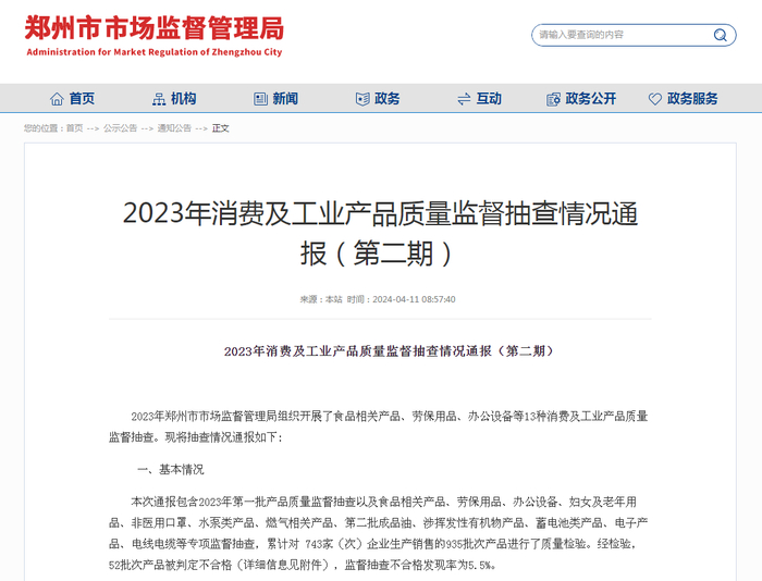 【郑州】2023年消费及工业产品质量监督抽查情况通报(第二期)