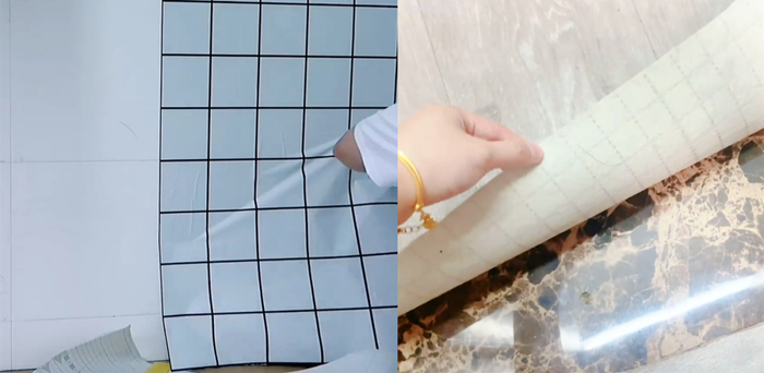比如在每个改造视频中都会出现的地板贴、小白砖墙纸,都会使用大量的胶。
