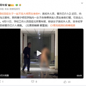 近日,内蒙古乌兰察布,网传集宁师范学院内一女子赤身裸体进入男生宿舍打砸,引发众人围观。4月11日,学校工作人员回应北京青年报,称该女子系校外人员,非本校学生,目前警方已介入调查。