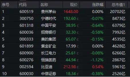 具体看成份股表现,中证A50指数50只成份股中,19涨2平29跌。海螺水泥(600585)、国电南瑞(600406)分别涨4.96%、4.39%,领涨板块;智飞生物(300122)重挫4%,药明康德(603259)跌3.91%,跌幅居前。宁德时代(300750)、中国平安(601318)、招商银行(600036)、美的集团(000333)等前十权重股普遍收跌。