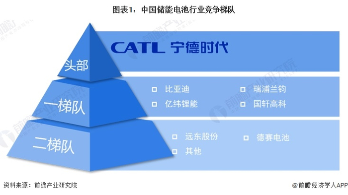 从市场占有率和研发实力来看,我国储能电池行业头部企业为宁德时代,市场份额占比超过30%。比亚迪、亿纬锂能、瑞浦兰钧和国轩高科等企业属于第一梯队,虽然与宁德时代相比仍有差距,但它们已经获得了一定的市场份额,市场份额占比在3%-15%之间,并且具备较强的研发实力。