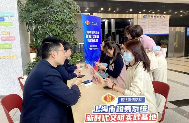 普陀区税务局“靠谱税宣队”走进天地科技广场,搭设个税年度汇算咨询服务台,“一对一”“手把手”为纳税人提供针对性、个性化咨询及引导服务,详细解答热点问题,辅导操作个税APP,助力纳税人感受政策惠民加速度,收获掌上办税优体验。