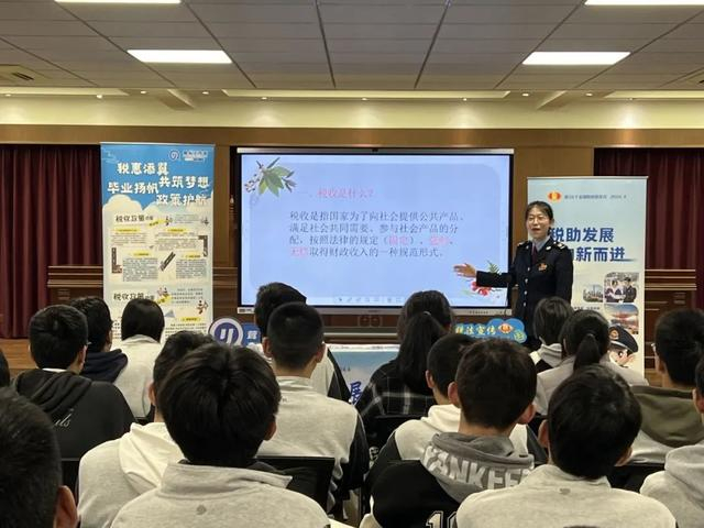 松江区税务局走进松江二中,以建校120周年之树人讲坛为载体,围绕“税助发展,向新而进”税收宣传月主题,以生动丰富的讲课和问答互动,传播税法相关知识,“云上”参观体验办税服务厅,持续深化青少年税收法治教育。