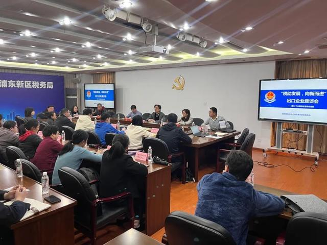 浦东新区税务局举办出口企业座谈会,企业代表积极交流,税务干部现场解答政策疑问,收集反馈,并推介最新税费优惠政策,助力外贸经济蓬勃发展。