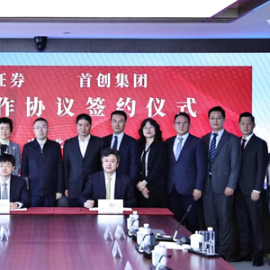 2024年4月11日,首创集团与中信证券在北京签署战略合作协议。首创集团党委副书记、总经理刘永政,中信证券党委副书记、总经理杨明辉出席签约仪式并致辞。首创集团党委常委、总会计师秘勇与中信证券投资银行管理委员会副主任汤峻代表双方签署协议。