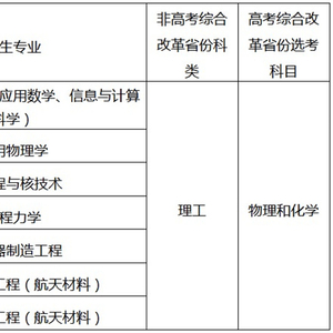 高中阶段在报考专业领域具有突出才能和表现,在数学、物理、化学、信息学中学生奥林匹克竞赛中获得全国决赛一等奖或二等奖,且有志于将来从事报考专业领域基础科学研究工作的优秀高中毕业生。