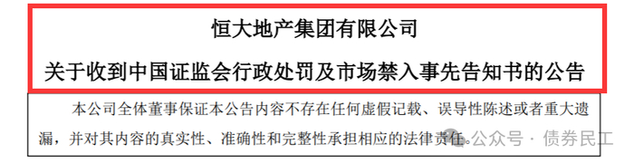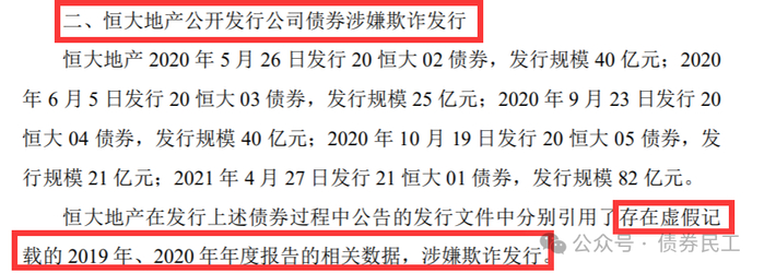 债券民工最关注的就是关于恒大地产发行公司债券的处理。公告中明确“20恒大02”、“20恒大03”、“20恒大04”、“20恒大05”和“21恒大01”等5只债券涉嫌欺诈发行,总发行规模合计为208亿元,均为小公募公司债券,被证监会处以非法所募资金金额百分之二十的罚款,即处以 41.60 亿元罚款。