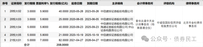 恒大地产公司债券的那些中介机构!