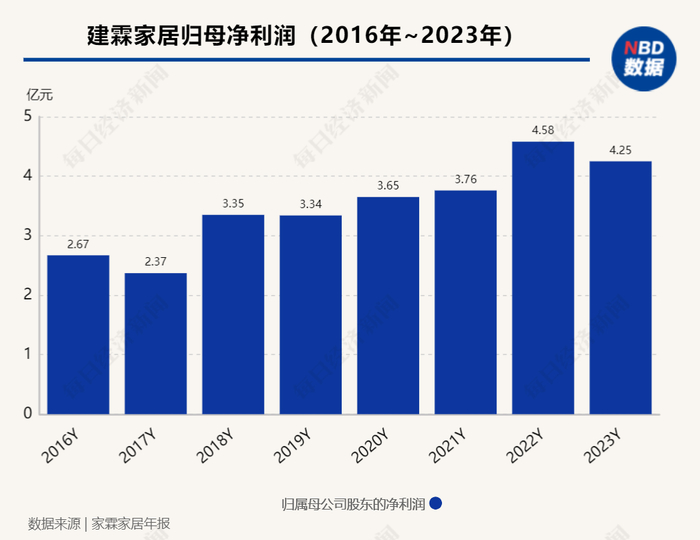 年报显示,2023年建霖家居实现营收43.34亿元,同比增长3.52%;实现归属净利润4.25亿元,同比下降7.25%;毛利率为25.97%,同比增长6.97%。