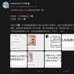 近期,美妆工具品牌尔木萄在官方微博账号表示,由于品牌战略及产品线调整,镜面唇釉产品售罄后做了停产处理,暂不考虑重新上架。