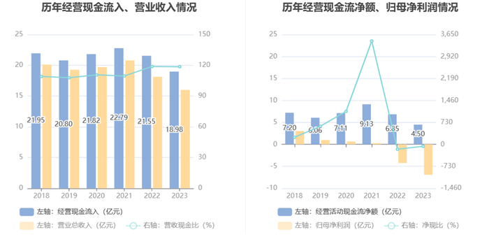 2023年,公司营业收入现金比为118.65%,净现比为-64.96%。