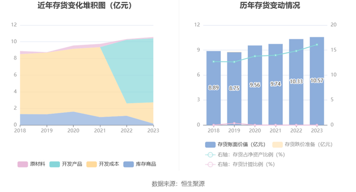 从存货变动来看,截至2023年年末,公司存货账面价值为10.57亿元,占净资产的16.1%。根据财报,公司本期没有计提存货跌价准备。