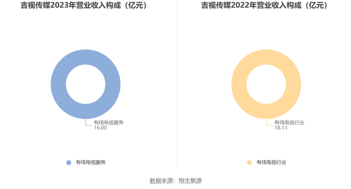 分产品来看,2023年公司主营业务中,有线电视服务收入16.00亿元,占营业收入的100.00%。