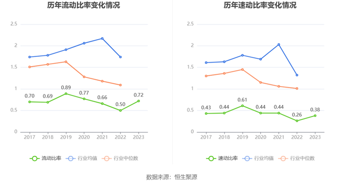 2023年,公司流动比率为0.72,速动比率为0.38。