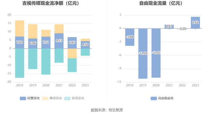 进一步统计发现,2023年公司自由现金流为2.62亿元,上年同期为-0.20亿元。