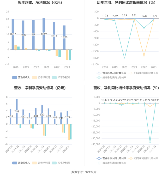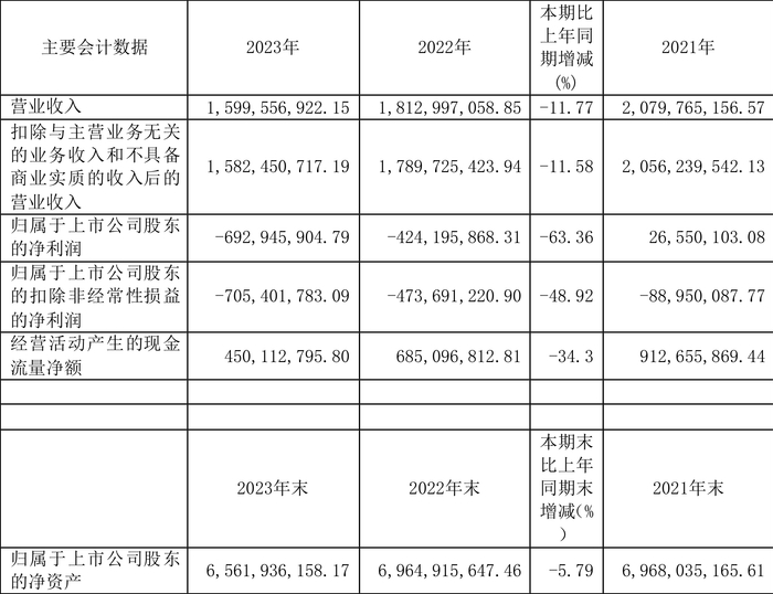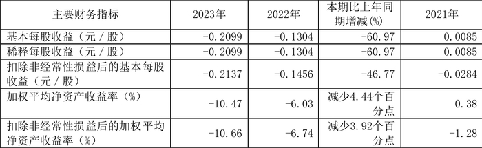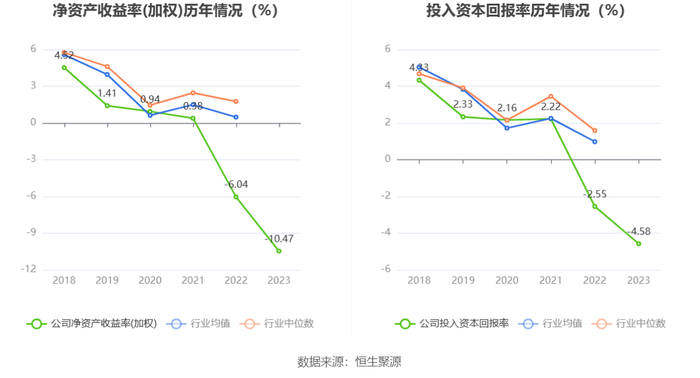数据显示,2023年公司加权平均净资产收益率为-10.47%,较上年同期下降4.43个百分点;公司2023年投入资本回报率为-4.58%,较上年同期下降2.03个百分点。