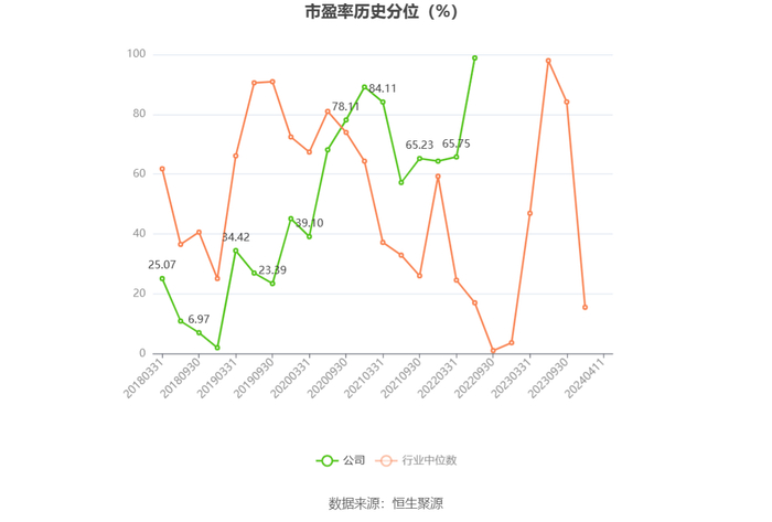 市盈率为负时,不显示当期分位数,会导致折线图中断。