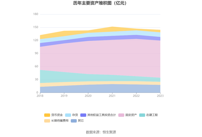 资产重大变化方面,截至2023年年末,公司货币资金较上年末增加48.00%,占公司总资产比重上升1.35个百分点;在建工程较上年末减少17.18%,占公司总资产比重下降1.21个百分点;固定资产较上年末减少0.40%,占公司总资产比重上升0.85个百分点;其他权益工具投资合计较上年末减少11.56%,占公司总资产比重下降0.63个百分点。